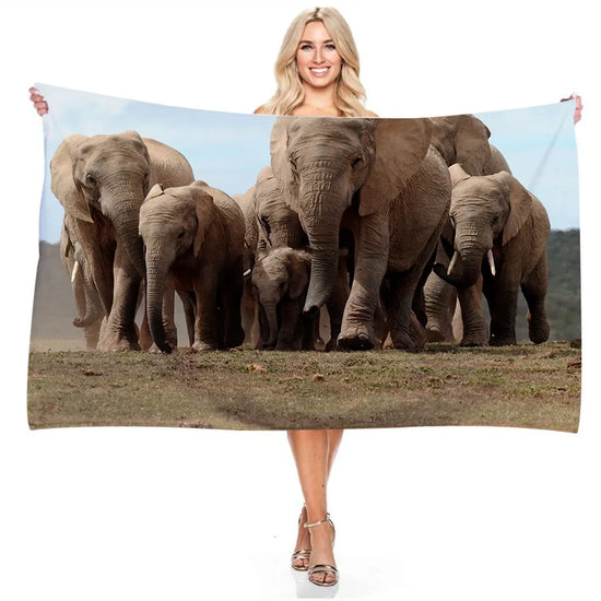Serviette de plage éléphant safari - Vignette | Serviettes de bain